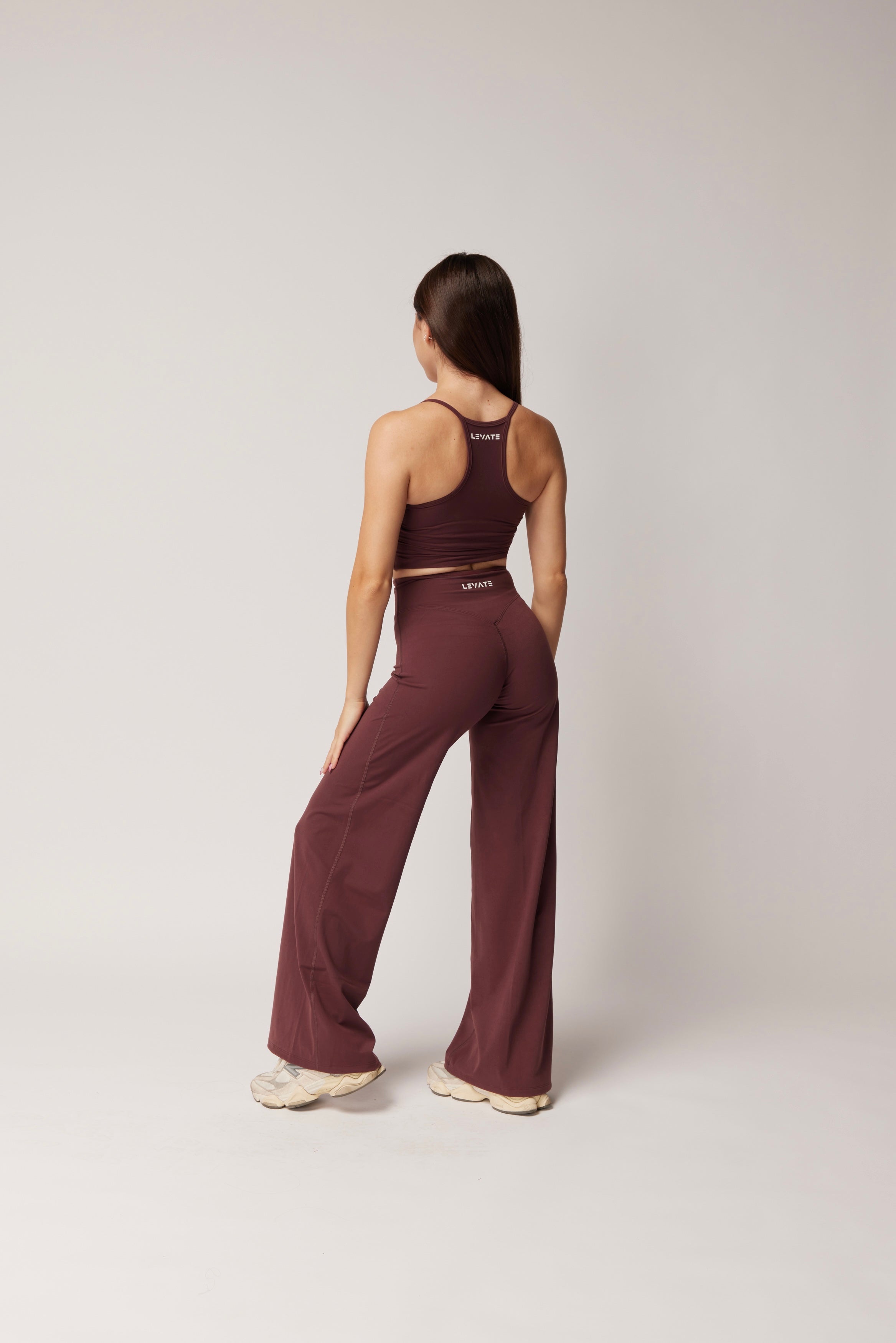 - Mid to high waisted fit